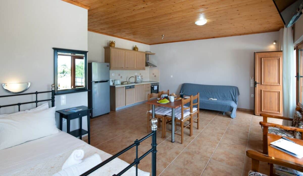 This is a modern and airy studio cottage located in one of the most spectacular spots in the whole of Lakka. Amalia Cottage is a contemporary paradise for couples looking to visit Paxos. High up on the western headland of the village, Amalia has glorious views overlooking the entire bay.